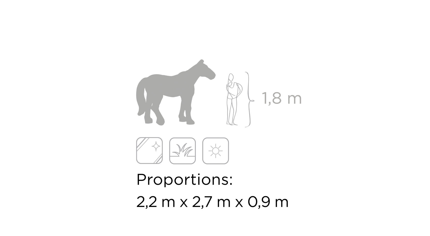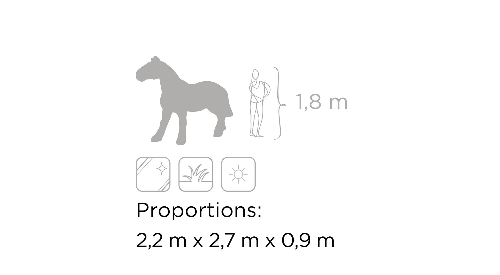 С древних времен у людей была особая связь с лошадьми. Это добрые, сильные и величественные создания, поэтому топиарные фигуры в виде лошадей станут элегантным и впечатляющим украшением экстерьера. Приобретите одну из них - или целое лошадиное семейство! - для вашего заведения и наблюдайте, как растет ваш бизнес.