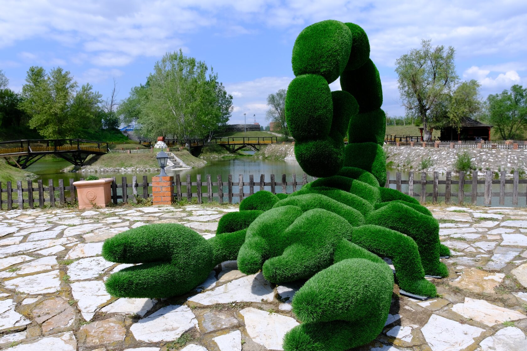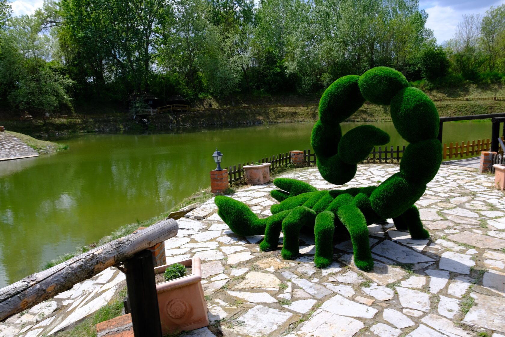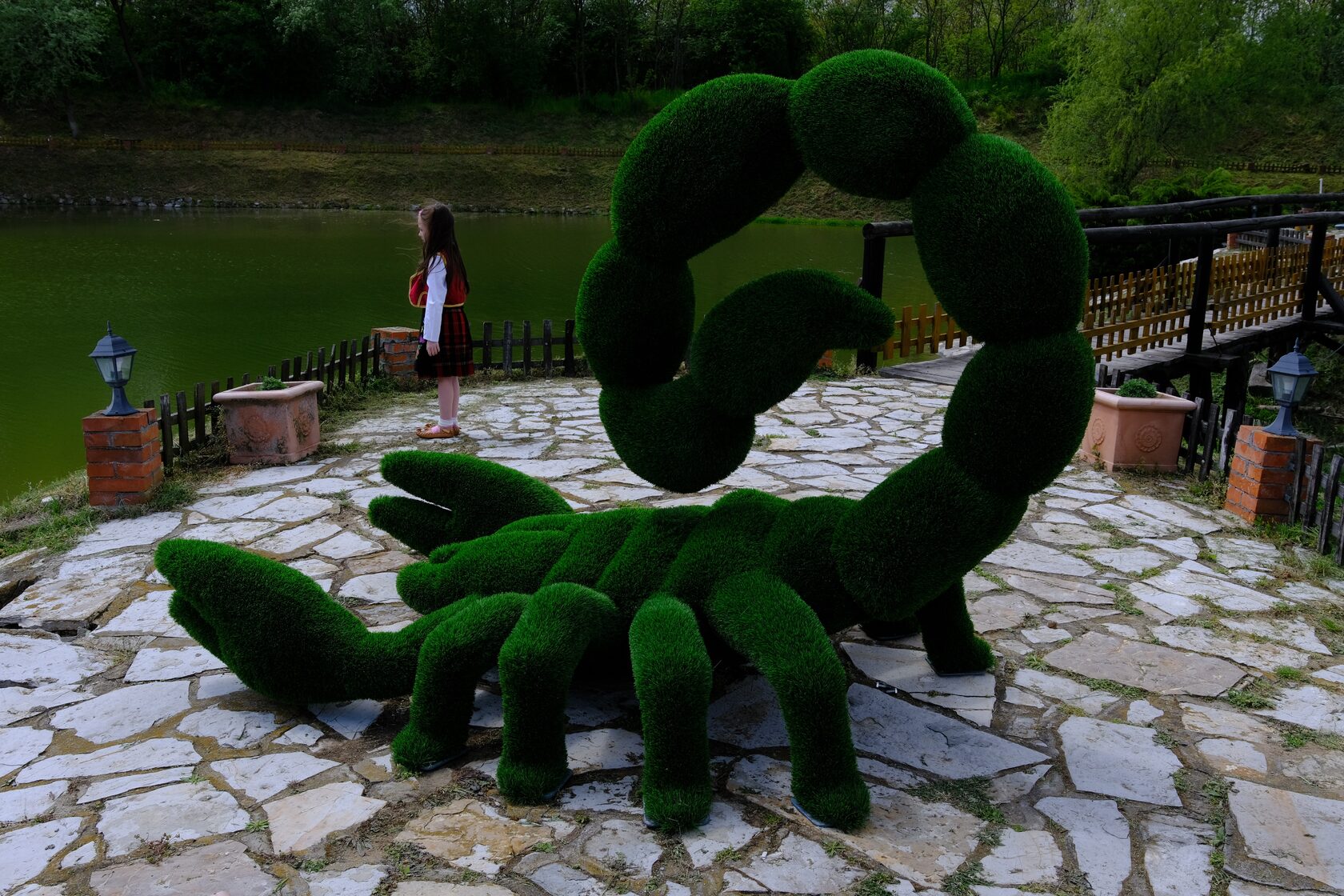 Этот большой и величественный скорпион вовсе не страшен! На самом деле, ваши гости будут рады погладить его или сфотографироваться с ним! Эта абсолютно безопасная и эффектная фигурка скорпиона из топиарного искусства привлечет внимание к вашему заведению!